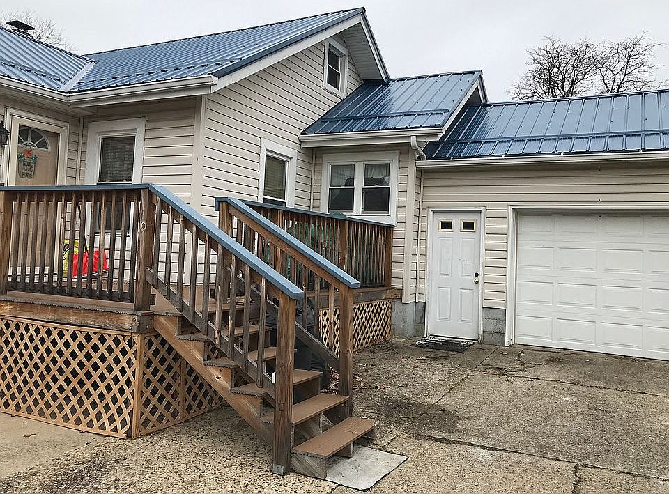 Easy one floor living! No Yard to Maintain! Lots of potential! Newer Windows & Siding & Exterior Doors! Beautiful Oak Hardwood Floors in Living Room! Possible 3rd Bedroom or Additional Living Space in unfinished Attic. Small Rear Patio Area for Grill-Table/Chairs. Interior Garage Access to Kitchen. Fresh Paint! Custom cabinets in Kitchen with corian countertops. Garage attached to house so easy access in bad weather.