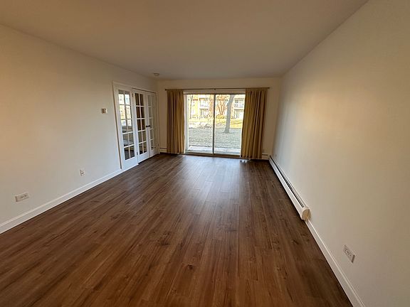 Move right into this unique studio with French doors separating the bedroom from the living area. This is a first floor, end unit, with a pond view. Updates include new vinyl plank flooring in the living and bedroom areas, new tub surround and a new a/c unit. Freshly painted throughout. Heat and water are included in the association fee. Amenities include a pool, fitness room, bike room, extra storage locker, elevator with laundry facilities on the second floor. Located close to shopping, restaurants, schools and Rte 53. Also a great rental opportunity!