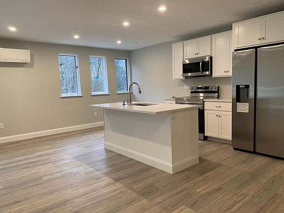 Beautiful brand new rental with vaulted ceilings and lots of natural light. You'll love the kitchen with granite countertops, stainless steel appliances (including dishwasher), island with seating, and under cabinet lighting. The large bathroom has a tile shower, stacked washer/dryer, vanity with granite top, and radiant heat in the floor. The living room has sliders out to a private deck that overlooks green space and woods. The landing in the stairwell makes great extra office space or mudroom. Mini splits for heat and AC. Flexible lease options. Pet friendly. Available for immediate occupancy. Off street parking Private laundry in unit Tenant pays utilities Pet friendly Flexible lease options No smoking