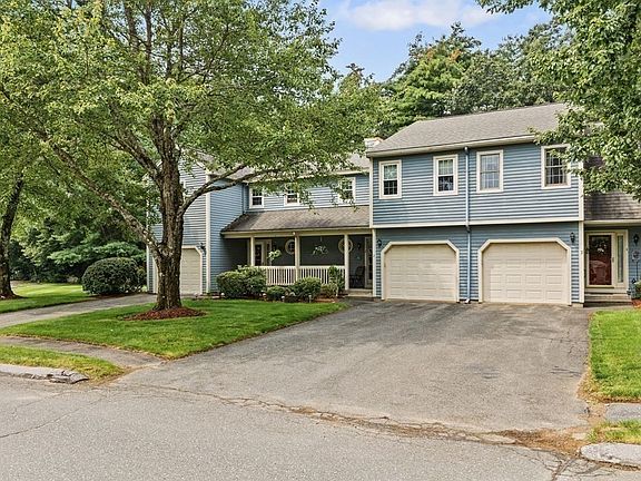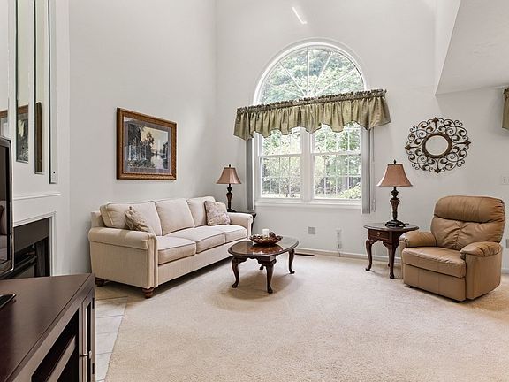 Meticulously maintained two bed two full and one half bath townhouse. Light filled living room with atrium ceiling, fireplace and large picture window. Adjacent dining area with slider to private deck overlooking expansive lawn and trees. Dining area has half wall to kitchen. Light oak colored cabinetry and SS appliances. Half bath with granite counters. Access to one car garage. Large primary bedroom with walk-in closet and ensuite bath with shower . Second full bath has granite counters and tub/shower combo. Laundry is on this floor as is half wall overlooking living room below. Neutral décor throughout. Heating / AC replaced in 2022. Private setting on a small cul de sac. Chair lift in place but would be removed if buyer requires.