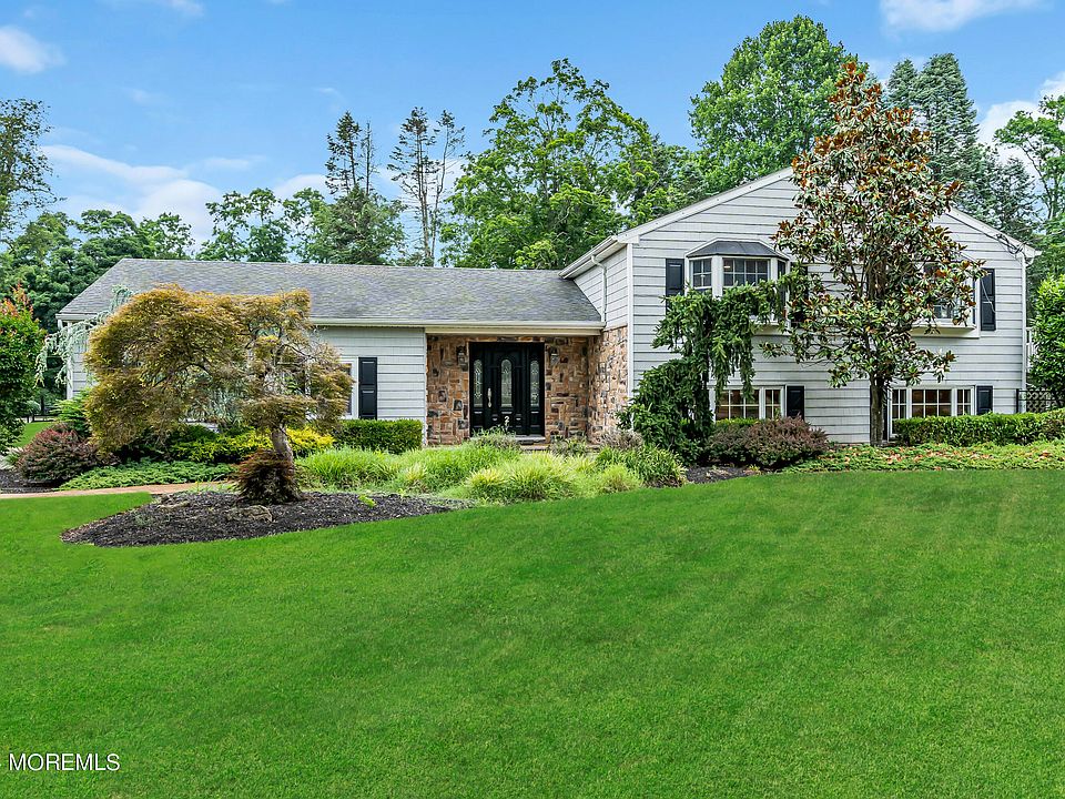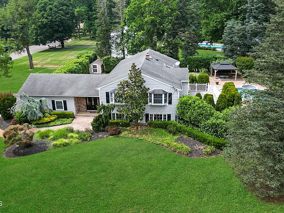 Indulge in the epitome of luxury living with this expansive 1.25-acre corner lot estate, showcasing meticulous landscaping and a resort-inspired backyard haven with large free form gunite pool resurfaced and tiled by Fortunato in 2023.This grand residence boasts 4 bedrooms, 5th bedroom or office space, and 3 full baths, adorned with exquisite custom moldings, coffered ceilings, and hardwood flooring. The gourmet kitchen is a masterpiece with custom cabinetry, granite countertops, center island, warming drawer, radiant heating tile, and high-end appliances. The palatial master bedroom sanctuary features a custom bath with jacuzzi tub, spa walk-in shower, and built-in seat. Additional highlights include a large deck, paver patio, and gazebo. Located in the heart of Colts Neck!