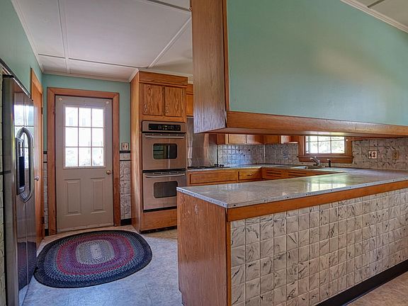 Welcome to the two story, four bedroom, two bathroom, beautiful home located at 2 Violette Ave in Waterville. As you arrive to the home, you'll notice the metal roof and lovely plants surrounding the home outside of the home. Walking through the side entrance of the home, you'll enter the retro-styled kitchen. The kitchen has partially covered tiled walls, a double oven, lots of cabinets for storage, and a vast amount of counter space. The dining area is adjacent to the kitchen which then leads to the carpeted living room with natural light pouring in from the huge window. Heading to the next doorway will bring you to the hallway containing two bedrooms and one bathroom. One bedroom contains carpeted flooring while the other contains wood floors, both having good sized closets. The downstairs, retro styled bathroom has pink partially tiled walls and cupboard space to store all your toiletries. Heading back through the hallway and into the living room, you will find carpeted stairs heading up to the additional two bedrooms and one bath. The upstairs room are currently all plywood, which is a perfect blank canvas to make the room of your dreams. One of the rooms has built in cabinets, two closets, and a crawl space for storage purposes. The bathrooms walls and ceiling are covered in marble tiles, and is very spacious. Don't miss your chance to tour this unique home!