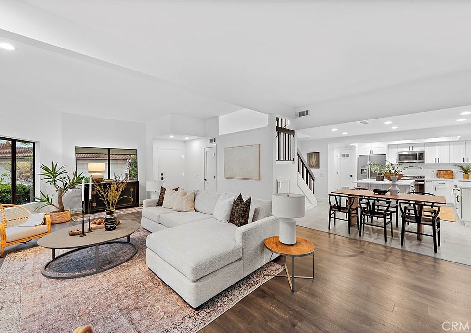 Welcome to your meticulously upgraded 3 bed 2.5 bath home, nestled within the vibrant community of Seaview Townhomes in Southeast San Clemente. This exceptional residence has been thoughtfully enhanced and freshly painted with an array of modern features, transforming it into a true haven of coastal charm and style. Inside you’ll discover a spacious entertaining room with windows throughout creating an open and airy atmosphere complete with a statement fireplace. With the kitchen at the heart of the home, it epitomizes elegance, boasting all new stainless steel appliances powered by gas, including a gleaming range that promises culinary delights. Brand-new subway tile and quartz countertops seamlessly paired with shaker-style cabinets offer ample storage space. The kitchen also boasts a newly installed pantry, ensuring you have everything you need right at your fingertips. The powder room downstairs offers convenience along with an included washer and dryer inside. As you ascend to the upper level, be captivated by alluring peekaboo ocean views from the bedroom windows, serving as a picturesque backdrop. The upstairs bathroom boasts a new vanity and all-new tub and tile, exuding sophistication and charm. The main bathroom features a dual vanity, adding a touch of opulence to your daily routine. Plush new carpeting upstairs along with all new interior doors and hardware add a touch of modernity to each room. Recessed lighting has been meticulously installed throughout the home, casting a warm and inviting glow on the elegant finishes. In the garage, marvel at the new garage door, and revel in the brand new epoxy floor that adds durability and style to the spacious 2-car garage. Outside enjoy your private patio space and enjoy the serene and freshly manicured extra-long greenbelt, where you can bask in the beauty of the surrounding nature. At Seaview Townhomes, indulge in the exceptional community amenities, including a swimming pool, spa, and tennis court, allowing you to enjoy an active lifestyle right within your neighborhood. A mere five-minute walk takes you to the heart of downtown San Clemente, where a plethora of dining, shopping, world-class beaches, and entertainment options await, making every day at home a celebration of comfort, convenience, and ultimate coastal living with tranquil surroundings.