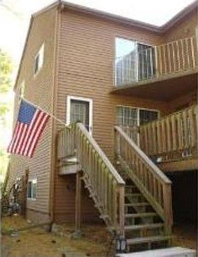 Bright & spacious 3 level Long L townhouse in Pine Lake Community! Fireplaced living room w/ slider to deck, formal dining room, eat in kit w/tile fl & slider to deck, 2 large brms, each w/a private full bth, cathedral ceiling & slider to balcony, master brm w/jacuzzi tub, separate shower stall and loads of closests w/a walk in closet! Lower level has much potential for extra room! Gas heat & C/A, 2 car garage! Wonderful location within walking distance to shops & across from the T Station!