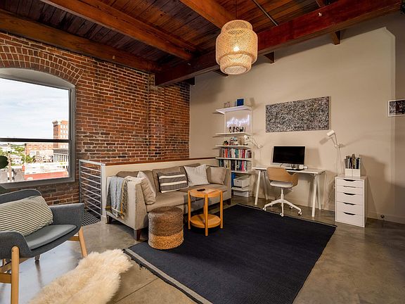 Charismatic 2BR/1.5BA Loft with concrete floors, 12-foot ceilings down, 10-foot ceilings up, exposed brick & wooden beams. Custom light fixtures installed, & custom closets & pantry. Gas cooking in Kitchen. Washer dryer stay, Refrigerator does not stay. Common gym in basement, rooftop with gas grill and seating, located up the stairs. Large storage unit #6 in basement, reserved, gated parking space #11 in lot behind building. South Main, Central Station, Tom Lee Park, all outside your door!