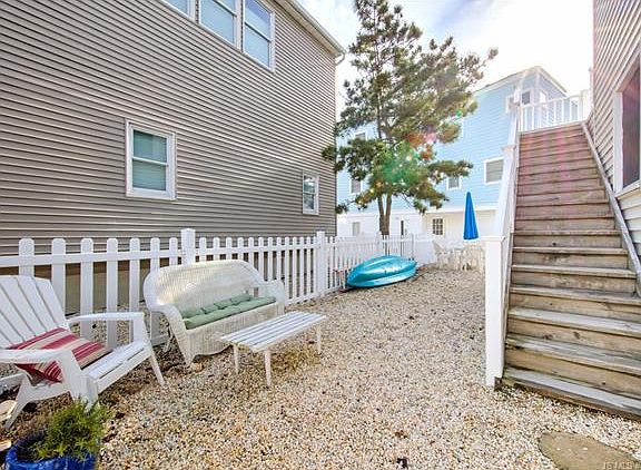 NEW PRICE! This well-kept 2nd floor unit is only 3 houses to the beach in a tasteful and quiet neighborhood. The living space has an eat-in kitchen with updated white cabinetry that opens up to the spacious living room. The home includes new windows, new stove, new refrigerator, new carpeting throughout and is freshly painted. The large backyard is fenced in for privacy. At the end of the street there is a nice park with a bay beach and a playground with basketball and tennis courts. Rental income potential around $2200 per week or you can move in and live island life year round!