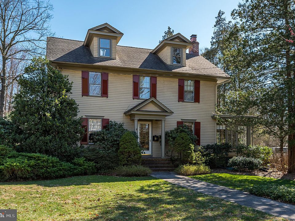 Built for Charles Jackson Allen son of Samuel Leeds Allen; inventor of the Flexible Flyer in 1920: This is one of Moorestown's most cherished homes and gardens. Sitting on 1/2 an acre in the middle of town and walking distance to Baker School you find a magnificently maintained center hall colonial with large rooms, high ceilings, solid finishes and modern amenities. This is the home where you will find plenty of space to enjoy alone or entertain the neighborhood. The main floor consists of a formal living room with gas fireplace; a magnificent sun porch full of light for plants; a formal library with wet bar and outside access; a huge family room; distinct formal dining room; and an eat-in kitchen with professional stove, granite counters, hand painted tiled backsplash and terracotta floors. Upstairs the primary suite includes a sun-filled bathroom with deep soaking tub and stall shower. The two other bedrooms on this floor are well-sized, including one with floor-to-ceiling bookshelves. Moving up to the third floor and you will find a bright office or fourth bedroom with skylights. Outside you are surrounded by magnificent gardens curated over 30 years. There is also an oversized detached garage, a sizable deck that wraps the back of the home and a relaxing Koi pond. Truly a once in a generation property to be loved for years to come.