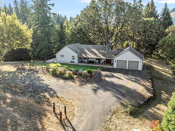 Discover the perfect blend of historic charm and modern convenience in this meticulously maintained single-level home boasting 1539 sqft of living space, and set on a spacious one-acre lot. Enjoy the privacy this property offers, surrounded by lush greenery and a serene setting, making it a true retreat from the hustle and bustle of everyday life. With 3 Bedrooms (one currently used as an office with a murphy bed), this home provides flexible living spaces to suit your lifestyle. The primary en-suite offers a private retreat with sliding door access to the expansive wraparound deck. The inviting living room also boasts sliding glass doors that lead to the backyard and a grand old Oak tree, seamlessly connecting indoor and outdoor living and providing easy access to your private oasis. The exterior has been updated with durable fiber cement siding for low maintenance, and the home has been lovingly cared for throughout the years. The cute galley kitchen awaits your personal touch, offering great remodel potential, and features access to the spacious covered front porch. Mini-splits have been added for efficient heating and cooling, and a Hearthstone wood stove in the family room adds a cozy touch for chilly evenings. The generous garden area invites your green thumb to flourish, whether you envision vibrant flower beds or a bountiful vegetable garden. A spacious two car garage with additional workspace, a separate shop and a shed provide plenty of workspace and ample storage for all your gardening tools and outdoor equipment. Don’t miss this opportunity to own a charming, private property in White Salmon that has been meticulously maintained and is filled with endless potential!