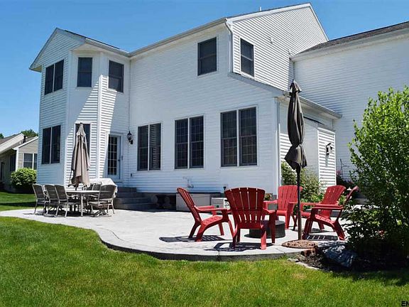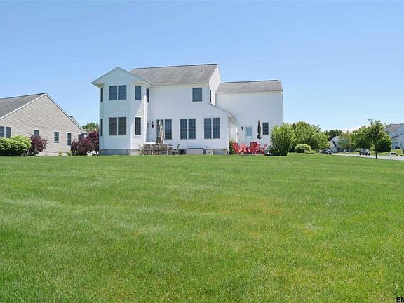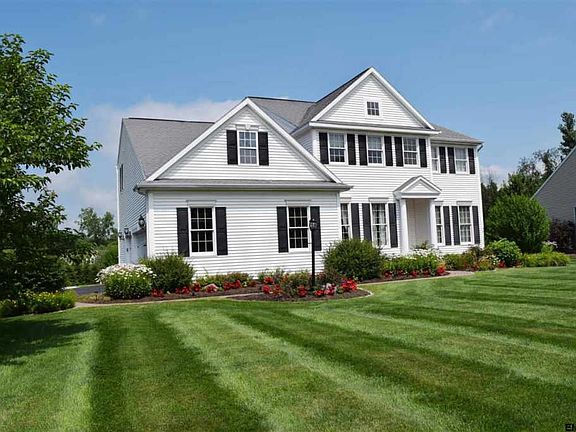 Welcome to this impeccable 5 bedroom, 3 full and 2 half bath, 3,689 SF colonial offering a .49 ac lot at the corner of two cul-de-sacs ? an ideal setting in Dutch Meadows. This upscale neighborhood in North Colonie School District is just minutes I-87 and every convenience in Latham! The Town of Colonie Mohawk River Park & Pool and access to the Erie Canalway Trail are just around the corner, too. The backyard features a spacious stamped concrete patio overlooking the beautifully landscaped lot and a privacy fence at the rear property line. There's a small fenced area perfect for a summer vegetable garden and an attached 3 car garage w/ new doors in 2016. Features 9 ft ceilings on the 1st floor & a 2 story foyer w/ 2 coat closets & hardwood flooring that continues through the living rm, dining rm, and kitchen. There's neutral carpet in the 1st fl office w/ French doors & the family room. You'll love the extensive wide crown and/or trim moldings in the foyer, living room & formal dining room also w/ picture molding & chair rail, and crown molding in many of the remaining rooms. There?s a huge, bright kitchen with open views to the family room. Offers maple cabinets, a granite counter w/ an updated marble counter on the half wall section above the sink, pendant and recessed lighting, a tumbled stone back-splash, double door pantry closet, and an eating area also w/ recessed lighting & a door to the patio and yard. The disposal and GE stainless steel appliances new in 2016 are included: 5 burner range w/ oven, additional wall oven, refrigerator, dishwasher, and microwave. The spacious formal dining room is perfect for entertaining family & friends and features a spectacular chandelier. The oversized family room features a gas fireplace & multiple windows overlooking the backyard. There are two partial baths on the main floor - one off the foyer w/ hardwood flooring & the other w/ ceramic tile conveniently off the mudroom?.and what a mudroom! This is a space the seller is going to miss?offers a double door closet, single closet, and access to the back yard. The separate laundry rm offers a connection for either a gas or electric dryer, a utility sink & the laundry chute which originates in BR 5 upstairs (washer and dryer are excluded). The open turned staircase to the 2nd floor has a chandelier & oak treads w/ a carpet runner. The master bedroom & bedrooms 3 through 5 feature neutral carpeting; BR 2 has newer hardwood flooring. The master suite includes a double door entry area w/ wood flooring, a walk-in closet, and the bedroom features overhead lighting, a chair rail, and room darkening fabric shades. There is brand new granite counters, a newer subway & glass tile shower w/ glass door, new lighting, a jetted corner tub, and ceramic tile flooring in the master bath. The secondary bedrooms have overhead lighting, double door closets, and custom room darkening shades/blinds. There is a new granite counter for the double sink in full bath nbr 2 also w/ a tub/shower. Bedroom #5 has a private full bath, perfect for a guest room. All custom window treatments throughout the home are included! Additional home features include a full basement, natural gas hot air heat w/ a Rheem furnace w/ humidifier, central A/C, upgraded insulation, 74 gal natural gas water heater, 200 AMP electric, Andersen wood double pane tilt-in windows. Features public water & sewer, vinyl exterior, architectural shingle roof and the lawn irrigation system includes extra sprinkler heads on all sides. The swing set is also included. 14,007.00 taxes are without exemptions.