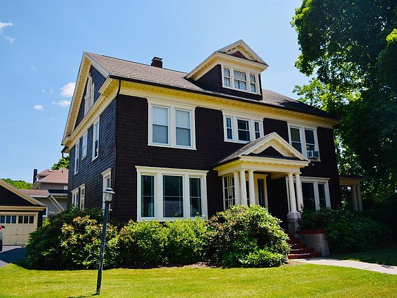 A Rare find- available for the first time in nearly 50 years! This meticulously maintained 4 Bedroom 2 Bath 3076 sf Oneonta home in a VERY DESIRABLE center-city neighborhood near Wilber Park is elegant, light-filled and has beautiful architectural detailing. Distinctive details include: hardwood floors throughout (except kitchen and baths), pocket doors, a butler's pantry, window and porch seats, built in storage, original hardware and a porch swing. The open and practical floor plan is conducive to entertaining. On the first floor you'll find an attractive entrance foyer with a large living room that opens to a wrap around exterior porch. The living room adjoins a family room with an ornamental fireplace. On the other side of the foyer is a formal dining room with two built-in, leaded glass corner cabinets. The remodeled eat-in kitchen and butler's pantry with original cabinets and ample storage adjoin the dining room. A 3/4 bath and rear unheated mudroom with original wainscoting complete the first floor. The second floor includes a lovely landing with a window seat, four large sun-drenched bedrooms, a full bath and a den/office or dressing room (that connects the two front bedrooms). Enjoy the morning sun from the enclosed sun porch off one of the bedrooms. There's a large walk-up attic for storage or potential expansion. The basement has high ceilings, a laundry area and an outside entrance with wide steps to the backyard. A two car detached garage is steps away from the back door. This home has blown in insulation, a newer roof and many recently updated high-efficiency windows. All of this, and it is one block to Wilber Park, conveniently located on a lovely landscaped corner lot in a quiet neighborhood near Main Street. Come take a look and fall in love!