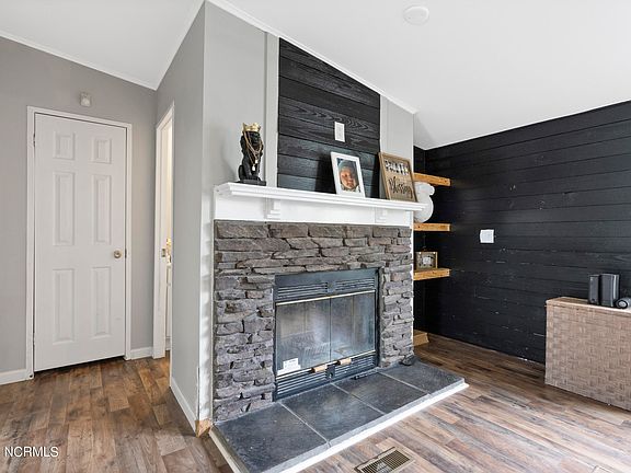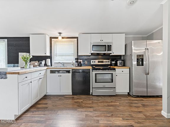 Nestled on a corner lot within walking distance of Sturgeon City, this charming home offers a perfect blend of convenience and modern comfort. Step inside to discover a contemporary atmosphere accentuated by striking black wood accent walls, sleek butcher block counters, and pristine white cabinets in the kitchen. The owner's suite is a retreat unto itself, boasting a generously sized standalone tub, a spacious walk-in shower, and double sinks for added luxury.