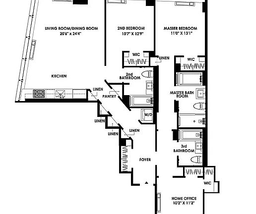Amazing two bedroom, three bath corner penthouse unit with den, large open kitchen with island, massive double exposure living room, and washer dryer in the unit now available. This unit features water views, top of the line appliances, and eight large custom closets.