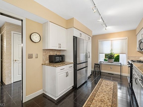 Tastefully updated & meticulously maintained, this elegant townhome offers comfort, style, & convenience. Featuring two spacious bedroom suites, and a one-car garage, it's move-in ready & filled w/ thoughtful details. A curved brick walkway leads to the welcoming entry, where neutral brick accent walls add warmth and texture to the foyer. The renovated kitchen (2022) features granite counters, stainless steel appliances, & an attractive pass-through to the dining room that enhances light and flow. Hardwood floors extend through the library, & living & dining rooms w/ elegant crown molding. A double-sided gas fireplace w/ distinctive mantels anchors the living room & library. Built-in cabinets flank the fireplace, & glass door opens to a Trex deck. The library's vaulted ceiling, skylights, & transom window fill the space w/ natural light. Upstairs, newer carpet runs throughout. Both bedrooms have en suite baths, and the primary suite includes a vaulted ceiling, linen closet, & custom-fitted walk-in closet. Primary bath offers dual sinks, a jetted tub, & a large shower. The finished lower level adds versatility w/ an entertainment center, home office area, & a spacious custom walk-in closet w/ high-end shelving and drawers, providing excellent storage or even an option to create add'l sleeping area if desired. A walk-out to a brick patio amid mature trees provides a peaceful retreat. A short stroll from the vibrant downtown of Lambertville & D&R towpath, or Goat Hill Overlook.