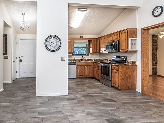 Well sought after townhome. One level living. Kitchen boasts of newer appliances, granite counter tops and is open to living area which makes it easy to entertain. Formal Dining area or office is just to the right of the kitchen and has access to the 2 car carport. All 3 bedrooms are good sized and has updated flooring. Access to deck from Living area and primary suite which overlooks the golf course. Living room has electric fireplace. Walk to the swimming pools, park, tennis, golf, Table Rock Lake and more. Perfect place to call home.