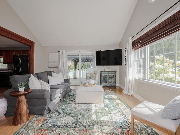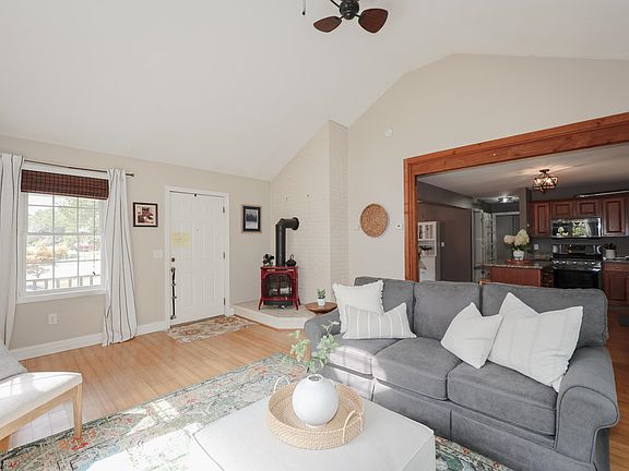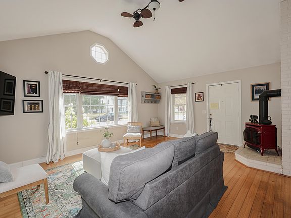 Welcome to this charming Cape-style home, nestled in a peaceful neighborhood. This 3-bedroom, 2-bathroom home offers a perfect blend of classic design and modern updates. The spacious living room with vaulted ceiling and gas stove flows seamlessly into the open-concept dining area and updated kitchen, which boasts granite countertops and modern appliances. The bathrooms have been tastefully refreshed, ensuring comfort and style throughout. You'll love the abundant natural light that fills the home, especially in the inviting living spaces. The first-floor primary bedroom is tucked away for privacy and features a large walk-in closet. Step outside to enjoy the oversized deck and fully fenced backyard, ideal for outdoor entertaining or relaxing in privacy. Located just minutes from parks, hiking trails, and all the conveniences of nearby shopping and dining, this home offers both tranquility and accessibility. Don’t miss your chance to make this beautiful Cape yours! Delayed showings begin on Sept 27.