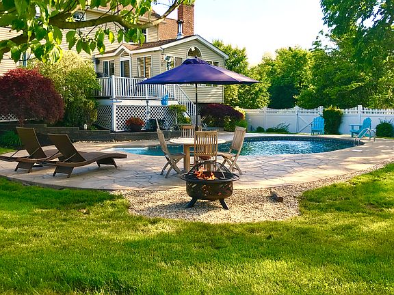 This wonderful 4 bedroom Colonial sits at the entrance of an attractive cul de sac neighborhood! The inviting floor plan includes a large updated kitchen with dining area, tray ceiling, granite counters and stainless steel appliances. It opens to 2 beautiful rooms...a cozy family room with stone fireplace, built in bookshelves, and vaulted ceilings, and a bright sunroom that has pickled pine ceiling overlooking the fantastic back yard. There is a main floor laundry room, powder room, formal dining room and an office/living room that has french doors for some privacy. The upper level has 4 bedrooms including a master suite with full bath and walk in closet AND a loft den that can have many uses. The lower level is partially finished and awaiting your personal touches. The property is perfect for entertaining with its extensive rear deck that overlooks the heated saltwater pool surrounded by a flagstone patio. Some recent upgrades include the boiler (2011) roof (2010) entire central air system (2017), septic tank (2019), pool liner and saltwater system . This location is perfect for the commuter and is minutes to highways, shopping and medical facilities. This home has all of the amenities you seek and deserve in this price range!