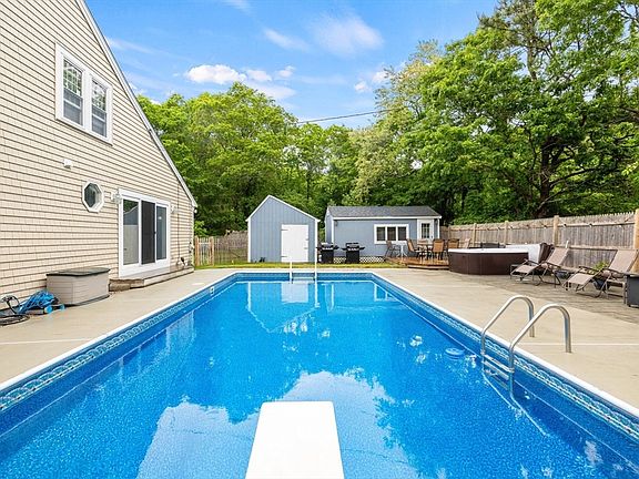Space seekers and commuters, this one's for you! This home is proudly perched on a hill in a great neighborhood off Clay Pond Rd. Perfectly located just 5 minutes to Monument Beach/boat ramp and the Bourne Bridge. This home was built w/space and storage in mind and offers large, bright rooms and a well thought out floor plan. 1st floor has a big eat in kitchen that leads to a large deck, formal dining room, living room w/woodburning fireplace, family room w/pellet stove, laundry off the kitchen and a full bath. 2nd floor has 4 spacious bedrooms with a full bath and the primary bedroom has a private full bath. Huge attic offers tons of extra storage space/potential for expansion. There is a heated 2 car garage w/workshop area and a large driveway w/plenty of parking. Additional 1/2 bath in basement. Fenced yard w/apple trees, 3 decks, a beautiful in ground pool, newly renovated pool house w/dry bar and power, new hot tub and a storage shed w/generator. Town gas/water, newer septic.