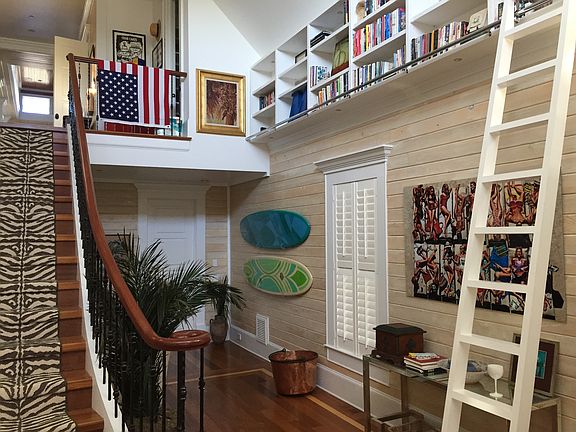 This luxurious home has exquisite views over the marsh and Intracoastal Waterway. Enjoy summer and fall evenings entertaining friends and family while having dinner on the deck or catching crabs off the dock. The sunsets are magnificent. Entering the home you will find a beautifully done library complete with a rolling library ladder and a hanging staircase leading to the main living area. The gathering place in the home is on the second floor to take advantage of the views. It consists of one bedroom and bathroom, an open spacious gourmet kitchen with top of the line appliances and stone countertops, a dining area that will seat 14 and a living area with a fireplace. This combined space opens to the porch and deck which span the width of the home. The master bedroom is located on the third floor for privacy and to take advantage of the views. It has double closets, a beautiful bath, a separate office / exercise room, and a private deck. It is accessible by an elevator with stops at all three floors. On the first floor you will find 3 large bedrooms, all with private bathrooms. There is also a den / game room that opens onto the pool deck. The library and a cozy reading space under the staircase. This is a beautiful home not to be missed.