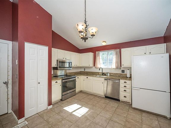 Here is a ranch home located in St. Peters in a cul-de-sac! The home has 3 bedrooms and 1.5 bathrooms with a open floor plan. A huge open space to entertain with cathedral ceilings and a large eat-in kitchen with plenty of cabinets and stainless steel appliances. Large primary bedroom with a half bath and additional 2 bedrooms and full bathroom. There is a large private yard with a wooden fence, a unfinished basement with plenty of storage, newer HVAC system and hot water heater. Make this home yours with your own personal touches!
