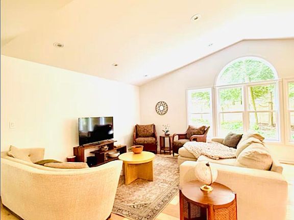 Expansive private yardBeautiful deckFull basementHardwood floorsCathedral ceiling