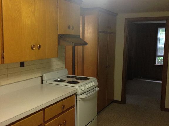 Small upstairs 1 bedroom apartment, neat, clean, kitchen appliances included, 1 year lease, no pets. Washer dryer hookups in basement. Only parking for one car. Owner pays for trash and water, tenant pays for gas and electric.