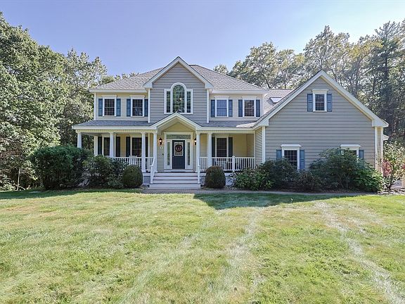 Welcome to this stunning Colonial-style home nestled on nearly 4 private acres in one of Groton’s most desirable neighborhoods. Built in 2005, this spacious residence offers 3,729 sq ft of elegant living space, perfect for both entertaining and everyday comfort. The grand entrance and vaulted ceilings will lead you into an expansive kitchen with island and breakfast nook. Cozy family room with gas fireplace opens to the 3-season great room with spectacular wood burning fireplace. Large formal dining room with tons of natural light and sitting area make the first floor a spacious floor plan. Second level offer primary suite with jetted tub and shower along with a walk-in closet. Three spacious bedrooms with ample closet space, laundry, and a bonus loft space complete the second level. Lower level is unfinished but offers a walkout to the yard and has full size windows. Other features include hardwood floors throughout, farmers porch, privacy driveway and beautiful wooded view.