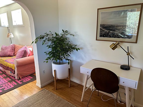 Charming casita on ten acre property in northwest estate neighborhood affords. Large fenced yard affords total privacy. Beautiful landscaped yard and garden area. Covered patio with table and seating for four. Recently updated one bedroom, one bath plus den/office with separate entrance. Bamboo, tile and cement flooring. Wood-burning stove. New refrigerator. Approximately 900 square feet. Casita is currently furnished. It can be rented unfurnished if desired. Will consider partial work trade if interested. Not necessary just an option. Terms depend on availability and skill set. Please be kind, quiet, conscientious and ecologically-focused with good credit and references. Owner lives in main house on property. Owner pays for water and trash pick-up. Renter pays for electrical. Renter also pays for phone, internet and cable if desired. Renter must have renter's insurance.