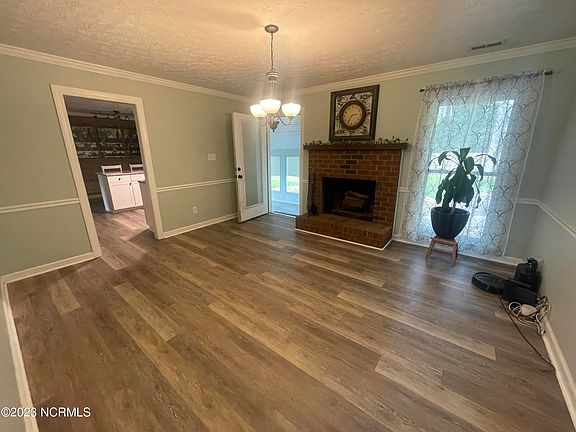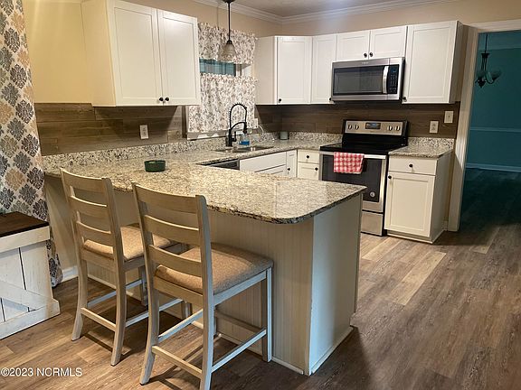 Beautiful ranch style home in the Indian Hills subdivision with no city taxes! The covered front porch is waiting for your rocking chairs. Step inside to the foyer of this beautifully renovated home. Your primary bedroom en suite includes a double vanity and walk-in shower. Two remaining bedrooms share a full-sized bathroom. The kitchen has gorgeous granite countertops and is perfect for preparing family meals. Enjoy a quick breakfast at your breakfast bar or more formal meals in your formal dining room. Off the dining room is a beautiful sunroom that leads to the backyard where you will find an above ground swimming pool and lots of room for entertaining. Only a short drive to New Bern and the Crystal Coast Beaches.