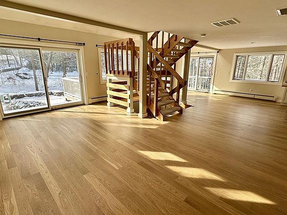 Updated contemporary located in the heart of the coveted, historical Town of Harvard. Deeded access to a private beach & mooring on Bare Hill Pond. Bright & sunny 3 bedroom, 2 bath is located steps from the top-ranked schools, trails, private beach & town center. As you enter, you'll be greeted by a spacious open floor plan, perfect for entertaining family & friends. The kitchen features stainless steel appliances, an island & opens to a large wrap-around deck. Sliders in the living area open to the deck, offering a serene view of the expansive backyard. A first-floor bedroom & ensuite bath complete the main floor. Hardwood floors throughout have just been refinished. Upstairs are 2 large bedrooms & a full bath. Spacious walk-out lower-level family room with built-ins & sliders to the backyard. Sited on one acre with views of Bowers Brook, the backyard is a private oasis, perfect for outdoor entertaining. Attached 2 car garage. Enjoy everything Harvard has to offer. Welcome home!