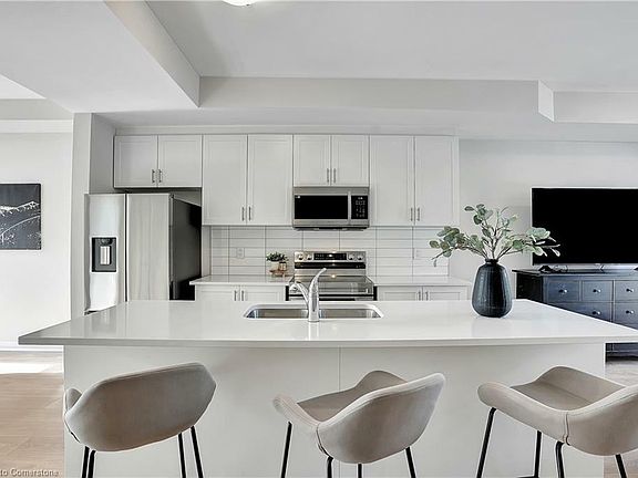Welcome to your new home in the heart of Paris, Ontario! This stunning condo townhome offers the perfect blend of modern comfort and convenience. With 2 bedrooms and 3 bathrooms, this home is designed to meet all your lifestyle needs! Step inside and be greeted by the inviting open-concept layout, where the spacious living room seamlessly flows into the stylish kitchen. The kitchen is a chef's dream, boasting sleek quartz countertops, stainless steel appliances, and ample storage space. Whether you're hosting a dinner party or enjoying a quiet night in, this home is sure to impress. The upper level features 2 large bedrooms and 2 full bathrooms! Ascend to the rooftop patio and discover your own private oasis. With breathtaking views of the Grand River, this is the ideal spot for soaking up the sun, entertaining guests, or simply enjoying a cup of coffee in the morning. Convenience is key with 1 attached garage for parking or a workshop. With charming shops, restaurants, and amenities just steps away, you'll have everything you need right at your fingertips. Don't miss your chance to own this exceptional condo townhome in Paris, Ontario. Schedule your private showing today and experience upscale living at its finest!