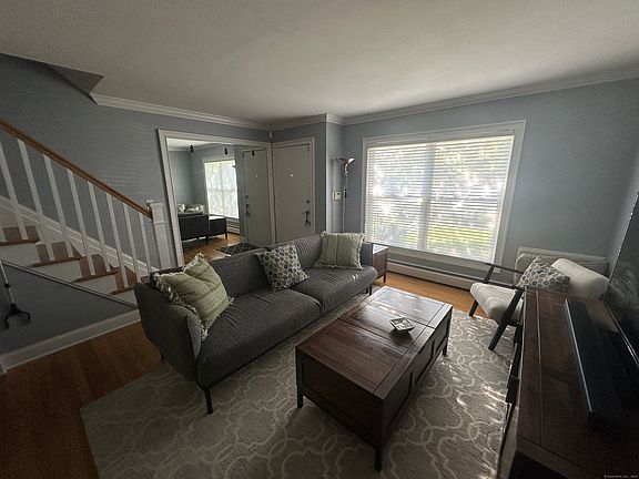 Nestled on a quiet, tree-lined street in a desirable Cove-area complex, this beautifully updated townhouse offers a perfect blend of comfort and convenience. The main level features a spacious living room and a bright eat-in kitchen with stainless steel appliances. A half bath and a walk-out patio complete this level, perfect for indoor-outdoor living. Upstairs, you'll find two spacious bedrooms, offering potential for a craft room or home office, and a neutral full bath. Enjoy the ease of low-maintenance living with a common charge that includes heat, hot water, cooking gas, grounds maintenance, and more. Shared laundry facilities and one assigned parking space (with plenty of visitor parking) are also included. This prime location is just a short walk to Cove Island Park, Chelsea Piers, beaches, and local shops. With easy access to I-95, the railroad, and public transportation, this is a must-see property for commuters and city-dwellers alike. Seller is requesting highest and best offers by 8:00pm on Friday, October 3.