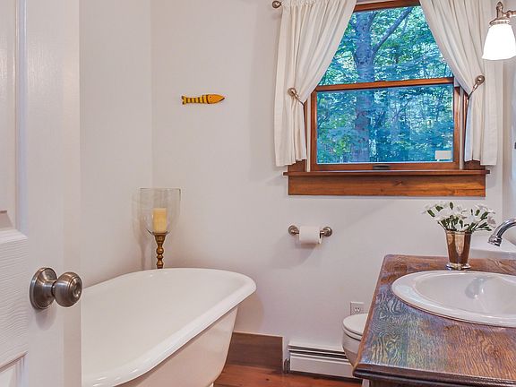 Immaculate Cape Cod style home with modern systems and classic charm-this home is nestled on a 1.85 acre lot with mature landscaping and is not to be missed! Gleaming pumpkin pine floors, sun drenched rooms, exposed beams and that cozy, ''we're home'' feel. Open Kitchen to living room with fireplace. Two first floor bedrooms and full bath with clawfoot, deep-soaking tub and separate shower. Second floor with two large bedrooms and full bath. Walkout daylight basement with future expansion possibilities. Additional amenities include: Anderson windows throughout, whole house generator, large storage shed, custom window treatments, private deck and more! All just steps away from many mountain biking and hiking trails and easy highway access.