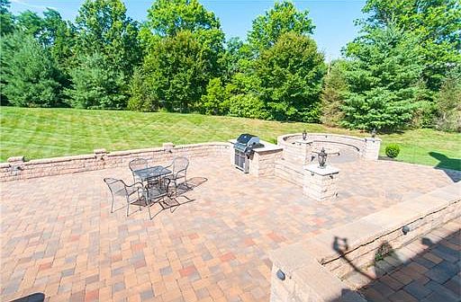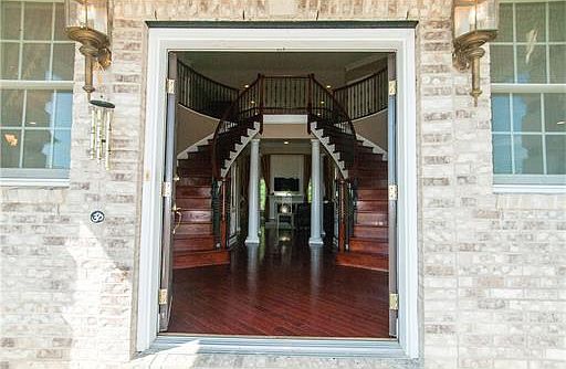 Beautiful entrance hall with chandelier, Doric columns, and a dual staircase to upper level. Entrance hall connects to a formal dining room, conservatory/office, and family room.Theater room with projector and automatic screen for family fun. Family room has French doors leading to outdoor patio.