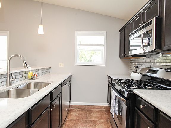 Clean, updated home in Fox Creek Village with so many upgrades. This particular home is on the very north end of Winding Way, so you get the advantage of having some extra parking near your house. Kitchen updated with quartz tops, garage door openers (whisper drives) and insulated garage doors were also updated, enjoy a large fenced backyard with custom paver patio and built-in firepit. Basement is finished with fireplace in the huge L-shaped family room, plus a dry bar to entertain, along with the extra bedroom and full bath. Freshly painted front door and thruout and just a super well cared for home. The Village comes with a community clubhouse that features a party room you can reserve, workout/fitness room, and indoor pool, so plenty of area to entertain and have a gathering party if you desire. Dues reflect lawn maintenance, private streets and clearly upkeep to the clubhouse.
