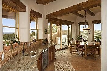 Now $700,000 Below Original Asking Price!!! Situated on a large 2.5 acre lot just a short walk to the Spa, Fitness Center and Clubhouse, this 4 bedroom, 5 bath, 4,864 square foot adobe and Rastra home stands as one of the best built homes in Las Campanas. From over sized solid walnut doors, to locally hand carved beams, vigas and accent doors, this house is teaming with extras that no other house offers. Enjoy some of the best sunset and mountain views from inside the house or while sitting out under the nearly 1,000 square feet of covered portals. The master bedroom has separate his and hers closets and an adorable Shepard's fireplace! Every bedroom has it's own on-suite bathroom. This home is an absolute architectural gem and is designed to live with you throughout your later years, without a single step in the house! Very well maintained and shows like new. A steal!
