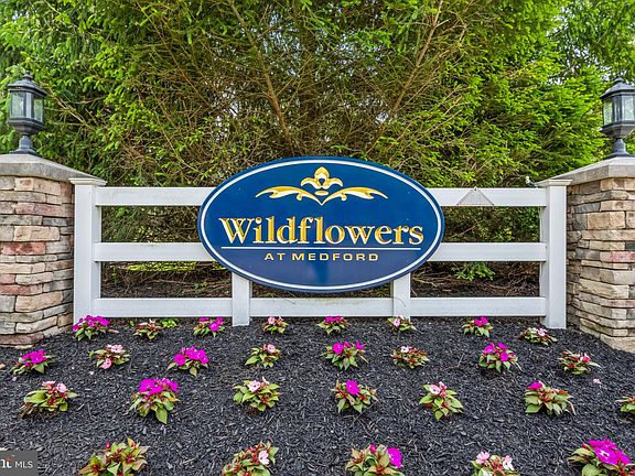 Gorgeous home in the Wildflowers 55+ community in Medford. Shows like a model home. Corner lot with extensive plantings and incredible curb appeal! Large rear raised patio and front covered porch. Interior boasts 9' ceilings, upgraded light fixtures, extensive crown, neck, and chair moldings. Gourmet kitchen includes double oven, center island, pantry and large eating area. The adjoining family room with high vaulted ceiling allows access to the oversized custom paver patio.