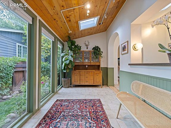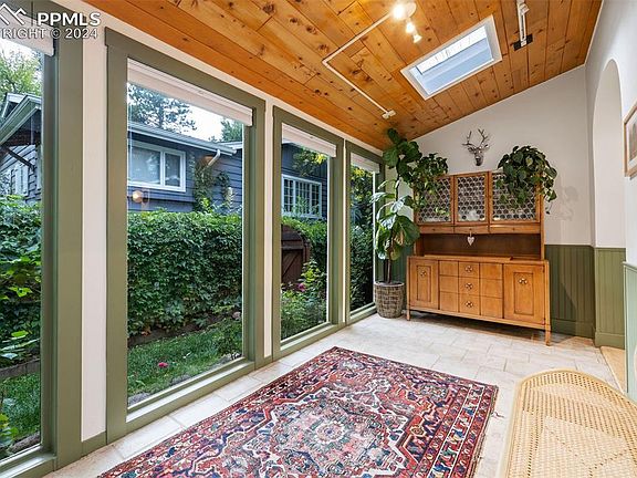 Welcome to the most charming home in Cheyenne Canyon! This home has been updated throughout while also keeping lots of the original character. As you walk in you will notice the floor to ceiling windows, vaulted ceilings, and sky lights providing an abundance of natural light. The kitchen has been updated with newer cabinets, counter tops, and appliances. The living room features a stand alone fireplace and original built in book shelves. The main level bathroom has been completely remodeled with designer finishes. This is the only turn key home on the market in the highly sought after Cheyenne Canyon neighborhood!T The home is also located within walking distance to Stratton Open Space and 7 Falls! New central A/C was just added!