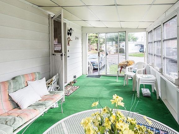 Rustic Pines is a beautiful 55+ Resident Owned North Attleboro community neighborhood w/ 40 sites.This Bright & Sunny Double wide home sits on one of the Best corner lot sites offering the most privacy.1 King size master w/ a wall of closets & Queen size guest bedroom w/a walk-in closet & storage system.There is an oversized full bath complete w/a make-up vanity. The bonuses continue w/an expansive built-in china cabinet in the dining room & still plenty of room for your credenza, buffet table and 12+ guest for Thanksgiving around this dining set. Enjoy the oversized open floor plan kitchen w/ breakfast bar too Super sized living room for entertaining & access to the front porch to gaze at the pines. Surprise there is a 15X15 exterior shed with electricity. Also newer A/C, irrigation system, & even a sunroom which always seems to be a warm & sunny place to be no matter the weather. A special home that is already underpriced for the upgrades you'd add based on the recent park $165K sold