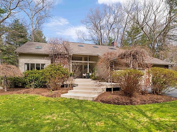 Located in South Natick's highly desirable Eliot Hill neighborhood, this stunning contemporary home offers a perfect mix of style and functionality. A beautifully renovated kitchen includes dual wall ovens, oversized refrigerator, wet bar/beverage center, radiant heated floors and a large island ideal for entertaining. A sleek glass solarium off the kitchen adds a bright, elegant space with views of the beautifully redesigned backyard. The main floor features a cozy family room with a fireplace & deck access, spacious dining room, living room with soaring cathedral ceilings and a gorgeous updated bathroom. Upstairs, the expansive primary suite includes a luxurious en-suite bath with a walk-in shower and jacuzzi tub. Three additional generous bedrooms and a full bath complete the second level. The finished lower level provides flexible living space and a large storage area. Other highlights include 3 car garage, quiet cul-de-sac setting & direct access to the aqueduct for peaceful walks