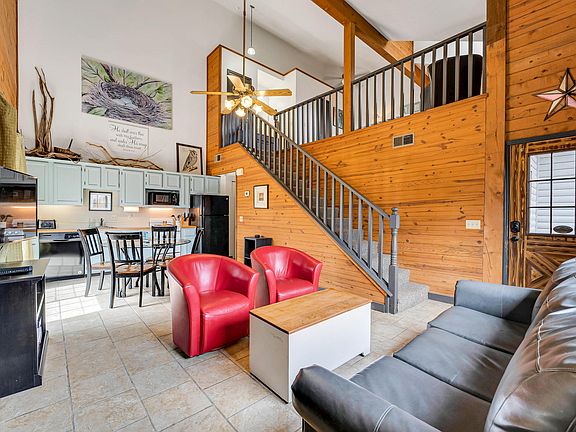 This adorable cozy log cabin in tucked in at the end of the street with with the deck facing the woods. Its a 2 story vaulted ceiling, fully furnished cabin thats currently on a short term vacation rental program with a property manager in place. Conveniently located just 5 mins from 76/the strip, and 5 mins to Table Rock Lake, or take a short walk down to Taneycomo.This property is one of two properties being sold together for $350,000. Photos are of this property with very similar layout and furnishings in the 2nd. See listing for 2 Cabin Ct 3, Branson MO for 2nd property info. These are 2 units of a 4-plex.