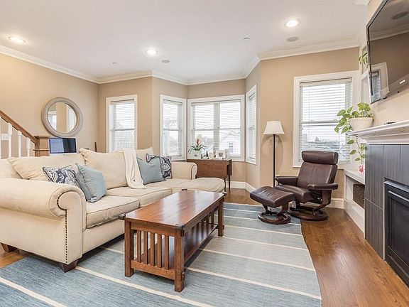 Rarely available home in desirable Port Norfolk! This must-see 2 bed, 1.5 bath penthouse duplex has a beautiful private roof deck, 1 off-street parking space & was ground up construction in 2013. The lovely & spacious open-concept living space features a large kitchen with quality custom cabinetry, stainless steel appliances & a large breakfast bar. It is adjacent to the dining area which easily accommodates an 8 person dining table, perfect for entertaining. The welcoming living room has a gas fireplace, beautiful bay of windows allowing for abundant natural sunlight & a full staircase up to your spectacular private roof deck. A perfectly placed half bathroom completes the living level. 2 generously sized bedrooms, both with great closet space are located on either side of a luxurious bathroom that features a large glass enclosed shower & fabulous vanity with abundant storage & counter space. Notable details incl. hardwood floors, deeded storage, C/A & separate laundry room/pantry.