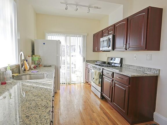 Can't beat the location of this beautifully renovated 2nd floor 2+ bedroom, 1 bathroom apartment near the Cambridge line. This nearly 1200 square foot unit offers magnificent sunlight into the open living and formal dining areas which lead into the modern (2016) kitchen with granite countertops and cherry wood cabinets. A refrigerator, dishwasher, gas range, microwave and disposal complete this fully-applianced kitchen which opens up to a massive private deck with roof. There is one sizable bedroom with a walk-in closet and one smaller bedroom, as well as an additional room great for an office or study. Gleaming hardwood floors throughout and high ceilings. Separate washer & dryer and storage space provided in basement. 2-car parking in driveway. Around the corner from #73 bus to Harvard Square, shops and restaurants & cafes, convenient to Boston and highways. Please no pets, no smoking. Available now.