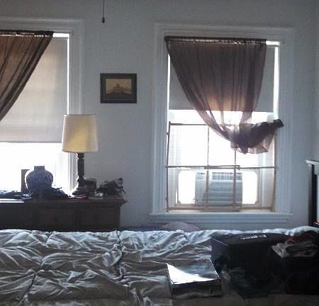 Large 1 bedroom 1 bathroom featuring open kitchen/living room layout with decorative mantle, high ceilings, large bay windows, very large bedroom. Laundry in attic exclusive to the unit. Additional space for storage in attic as well. Parking available for an additional fee.