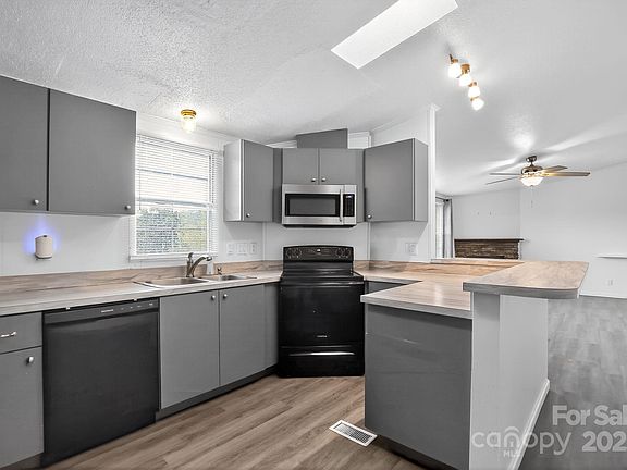 Enjoy peaceful country living with mountain views just minutes from Asheville. This updated 3-bedroom, 2-bath Mobile home sits on over half an acre and features a bright, open layout with thoughtful upgrades throughout. The spacious kitchen offers updated cabinets, countertops, and appliances, flowing into a cozy den with fireplace and separate living area. A split-bedroom design ensures privacy, with a large primary suite and full laundry room. Skylights add natural light, and recent improvements include updated bathroom fixtures, and a newer roof. Conveniently located only 15 minutes from downtown and 10 minutes to West Asheville.