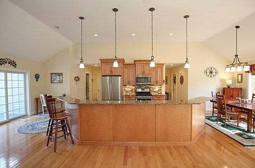 A Truly Special Offering. Like new, open concept, contemporary ranch offering a tranquil, laid-back vibe with generously sized rooms, hardwood floors, large quartz & stainless kitchen, central air & a house generator. Enjoy your morning coffee gathering at the oversized 8 person center island that opens to the family room with vaulted ceilings & gas fireplace. Its the perfect floor plan for privacy with a master suite, custom bath & his & hers walk-in closets on one end, and two guest bedrooms on the opposite end. With an oversized composite deck with a sunset awning perfect for sipping, grilling, and entertaining on a professionally landscaped 1.38-acre lot. The walk-out basement could easily be finished, it has full-sized windows & sliders to a patio. Located in a highly desirable neighborhood, close to commuter routes, minutes to Plaistow, Amesbury & Haverhill. Offers due Tuesday at noon. All visitors must wear masks.