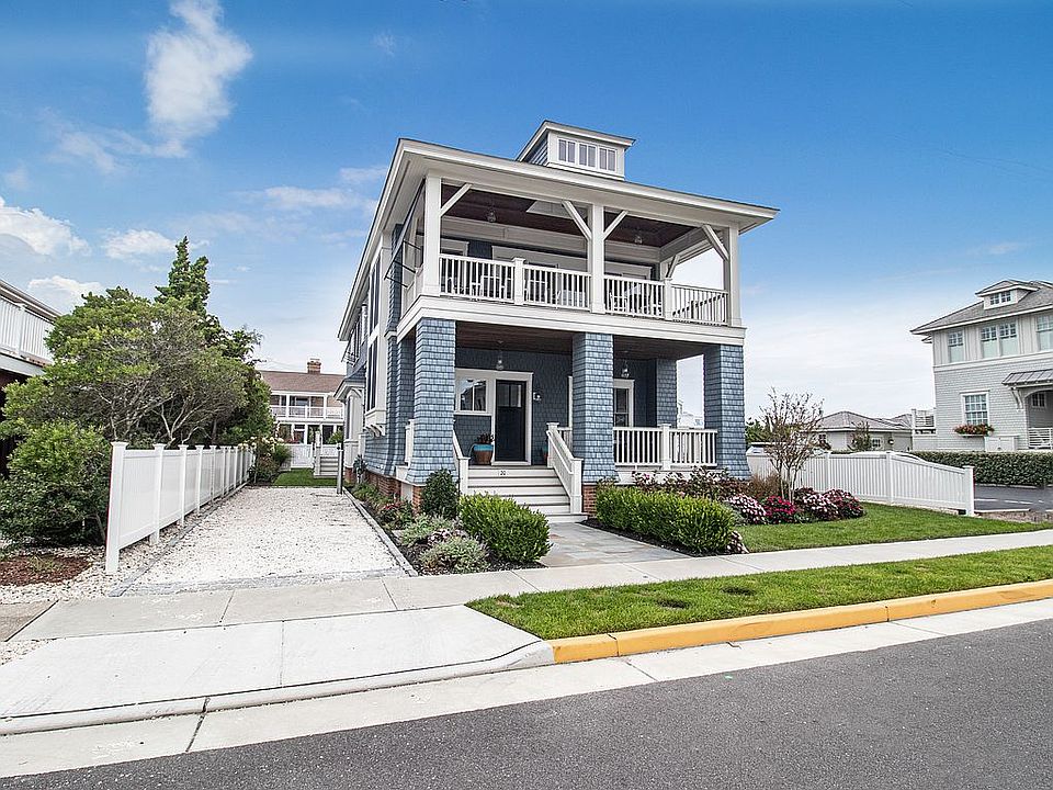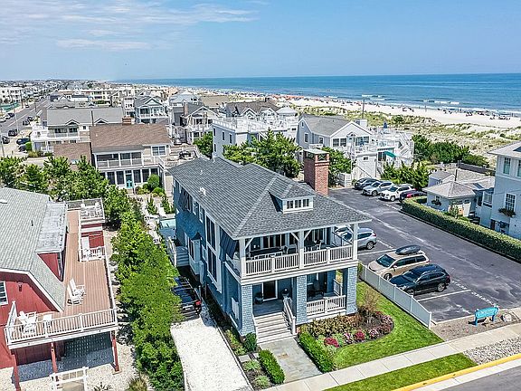 ULTRA CUSTOM BEACH BLOCK HOME SECOND FROM THE BEACH WITH EXHILARATING OCEAN VIEWS THROUGHOUT THE MAIN FLOOR. Mark Asher Architect designed this upside down style home which was custom built by Brandywine Developers to take advantage of the extraordinary and unique ocean vistas virtually from every second floor room. Adjacent to a sedate condominium parking area, the east facing ocean views from the southern exposed great room as well as the east facing master bedroom are as close to beach front as you will find. The first floor has 4 bedrooms, 2 en-suite custom tiled baths, attractive hall bath, family room with high ceiling and a wonderful transition to the heated pool with expansive blue stone pool deck. The custom bunk room on the first floor is clever and sleeps four. A custom staircase leads you to a dramatic, vaulted great room with an abundance of over sized windows allowing plenty of natural sunlight and fabulous ocean views. The comfortable great room with fireplace has a fabulous kitchen with high end appliances, Wolf and Subzero, wine fridge, stone tops, large center island and a beautiful powder room. There is an easy flow to either the expansive main deck with mahogany ceiling or the east side deck off the dining room both with stunning vistas. The exhilarating ocean views continue through to the sumptuous master suite with gorgeous master bath and deck access. Other special features include wide plank hardwood floors throughout the entire home, custom millwork throughout, full cedar exterior, ipe decks, gorgeous landscaping, stunning brick faced exterior chimney, two on demand hot water heaters, outside shower and matching detached storage cabana. The home is sold fully and attractively furnished.