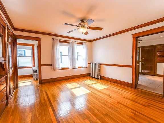 Traditional 2 family with gumwood and period details on a tree lined street. Spacious sun filled living room , dining room with built-ins, eat in kitchens, sunrooms, good size bedrooms, enclosed rear porches, garage parking, walk-up attic with potential, second floor laundry in unit, updated windows and electric. Close proximity to Centre St, shops, restaurants, public transportation, commuter rail, parks and highway access.