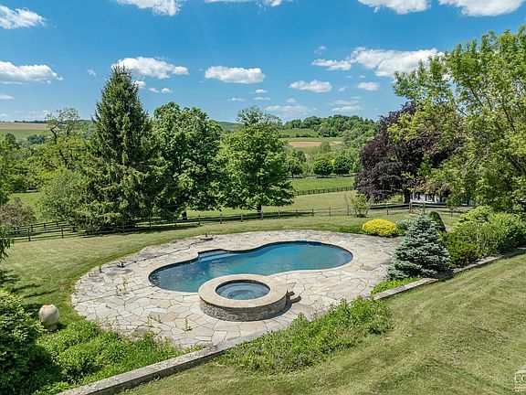 Located in the Millbrook hunt countryside and the coveted Smithfield Valley which offers long vistas of rolling hills dotted with grazing horses and cattle. This original late eighteenth century home is nicely set back from the road on a tree lined drive. There are five bedrooms with four full and three half baths on 41 acres. The spacious eat-in kitchen includes a pantry, sitting area and fireplace. For entertaining, there is a formal dining room with fireplace, large living room with fireplace and many other rooms to gather. The front rocking chair porch overlooks a paddock, the beautifully landscaped property and the distant bucolic views. In addition, there is a two bedroom guest house, a three-bay garage with a second floor, and a heated gunite in-ground saltwater pool and spa. The horse facilities include a stable with 9 stalls, outdoor riding ring, five large paddocks with water, and a large storage equipment building. Move into this special offering, located between Millbrook and Millerton and just 10 minutes to Metro North.