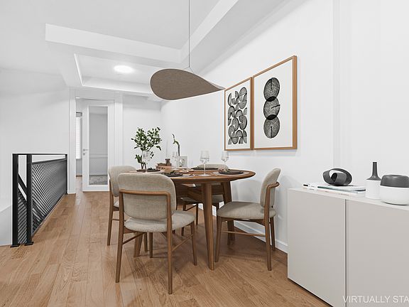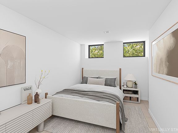The lower level provides a versatile space perfect for a home office, media room, or creative studio, with the added convenience of a half bath. Central air conditioning, in-building laundry, and modern recessed lighting enhance comfort and ease of living. Photos are virtually staged and of a nearly identical unit in the building to showcase style and quality.
