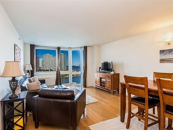 Stunning views of Midtown Manhattan abound from this luxurious condo on the Jersey City waterfront. 1 bed/1 bath with over 700 sq. ft. of living space offers the largest 1 bedroom floor plan in the building. The unit features bamboo floors, fully equipped kitchen, in-unit washer/dryer, large walk-in closet and floor to ceiling bay windows bringing in lots of light. Building amenities include doorman, heated pool, community room, gym, outdoor patio with BBQ grills, and children's play area. 1 deeded garage parking spot also is included. Perfectly located near the PATH, light rail, buses, parks and schools, this home affords its owners all the conveniences of urban living in a spectacular setting.
